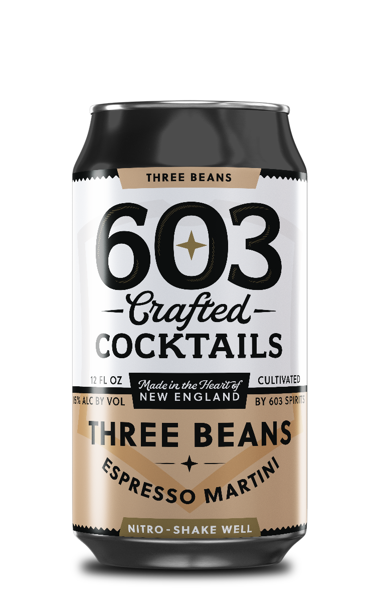 603 Crafted Cocktails Three Beans Espresso Martini- is made with vodka, coffee, chocolate, Madagascar vanilla, cream, Demerara, and infused with nitro for the ultimate velvety smooth sip.