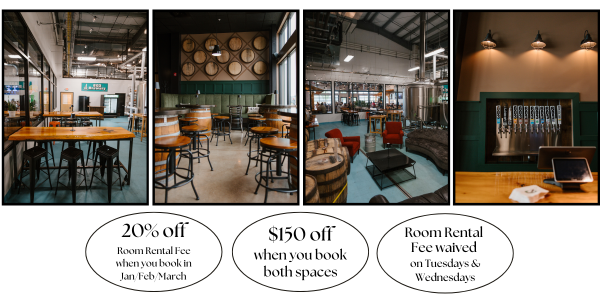 This private event space can accommodate up to 34 guests and is designed to immerse you in the 603 Brewery experience. When you enter, you'll be welcomed by a custom-built barrel wall showcasing the tops of barrels used in the aging of our beers. The Barrel Room features two walls of windows—one letting in natural light and the other providing a view into our brewery's production side—offering a unique and immersive experience for your event. If your guest count is higher, please let us know in the form below for additional options. We look forward to hosting you!